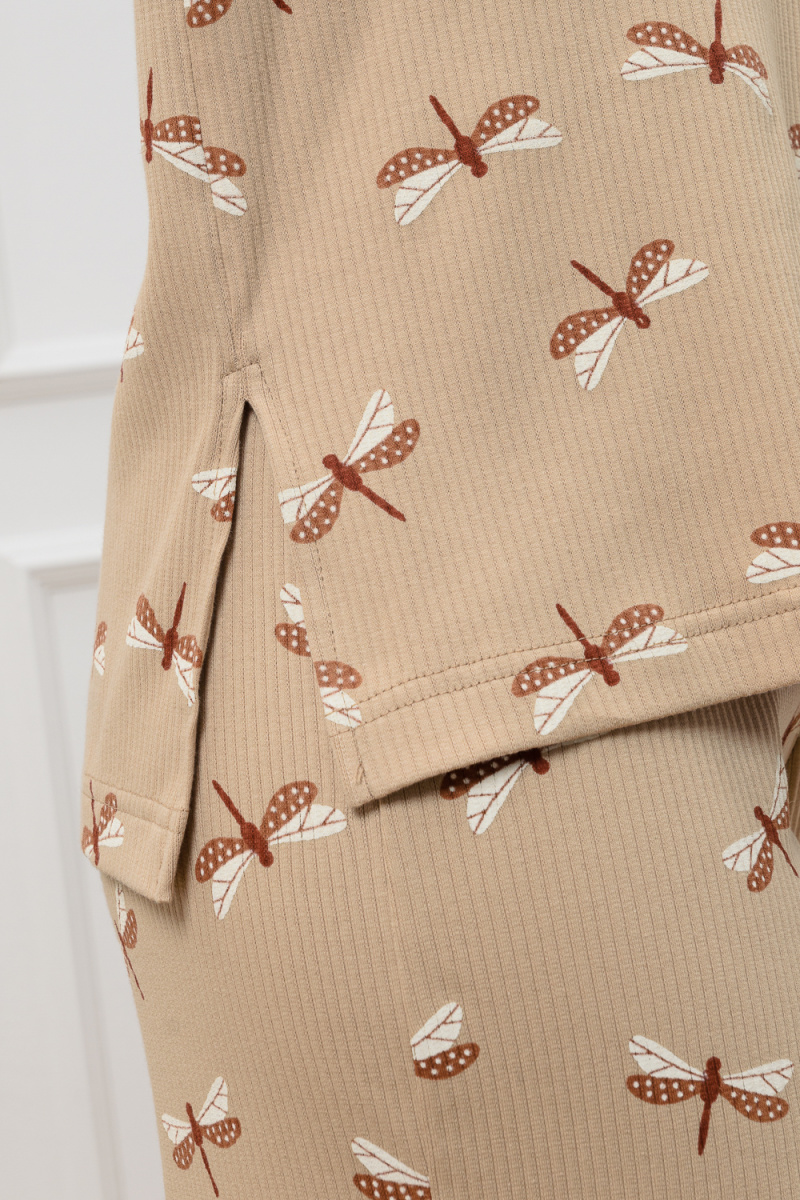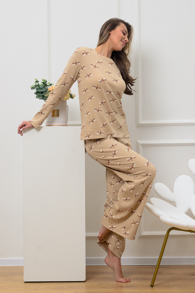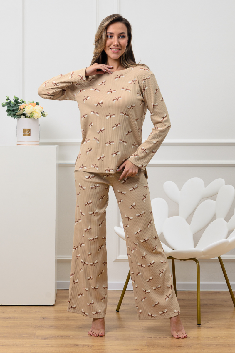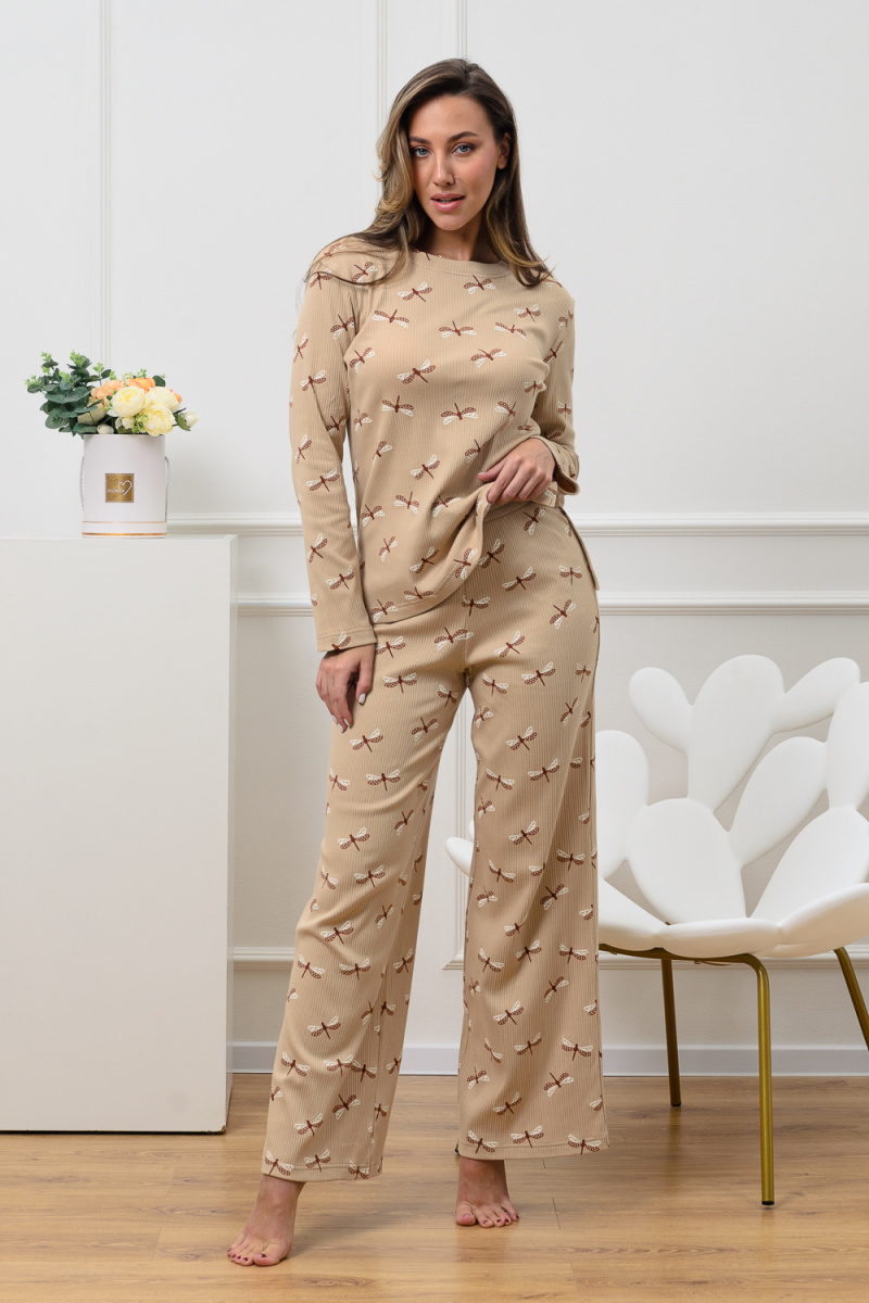 Красивый, стильный, уютный домашний костюм состоящий из брюк и кофты с длинным рукавом (лонгслив). Брюки свободные, широкие. Цельнокроеный пояс брюк с комфортной широкой резинкой имеет аккуратный вид за счёт обработки на многоигольной поясной машине. Лонгслив свободного кроя с разрезами по бокам (спинка длиннее переда) имеет полноценный длинный рукав; округлая горловина кофты обработана планкой и отстрочкой. Комплект выполнен из высококачественного хлопкового полотна (качество пенье) с плетением "в рубчик", так называемым "лапша", которая остаётся в тренде уже не первый сезон. Способ переплетения нитей и структура самих хлопковых волокон придают трикотажному полотну отличную впитываемость и хорошую воздухопроницаемость. Ткань отличается мягкостью при высокой плотности, вещи из неё нежные и приятные на ощупь и внешне привлекательны. Наличие лайкры прибавляет эластичности. Благодаря особенностям материала создаётся стильный вид. В таком ансамбле можно принимать внезапно пришедших гостей. Универсальный фасон, со